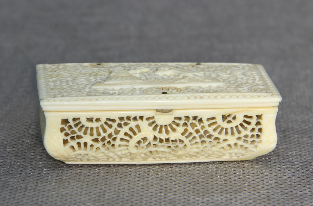 Кость животная, металл/ резьба сквозная, монтирование. 2х6,4х3,6 см.