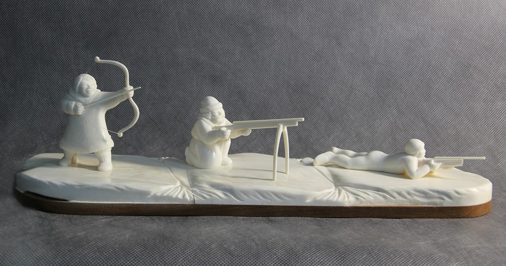 Рог оленя, дерево, леска/ резьба объемная, резьба рельефная, гравировка, монтирование. 12,5х38,5х10 см.