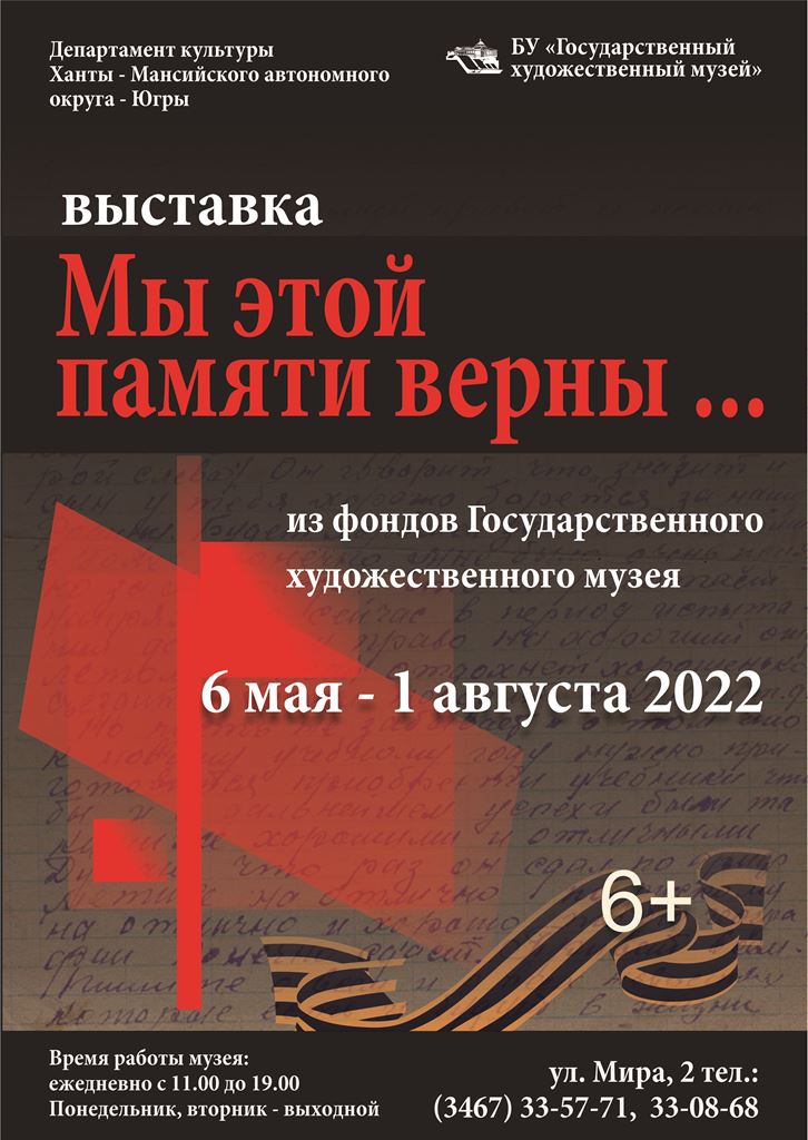 6 мая в 16.00 в Государственном художественном музее состоится открытие выставки «Мы этой памяти верны…», посвященной празднованию 77 годовщины Победы в Великой Отечественной войне.
