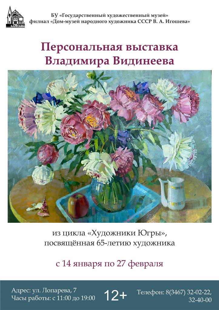 14 января в 15.00 в филиале Государственного художественного музея «Дом-музей народного художника СССР В. А. Игошева» состоится открытие персональной выставки Владимира Николаевича Видинеева, посвященной 65-летию художника.