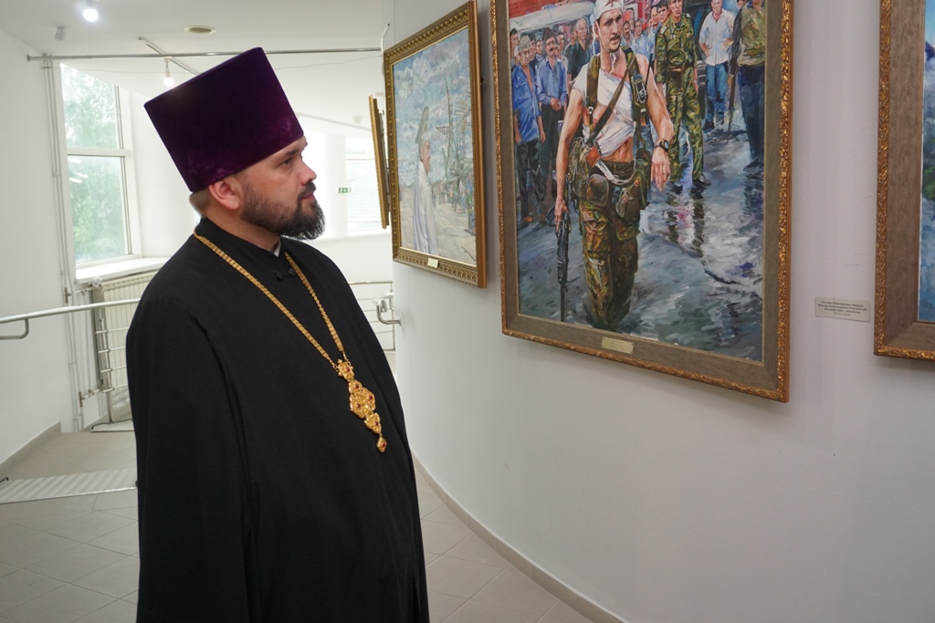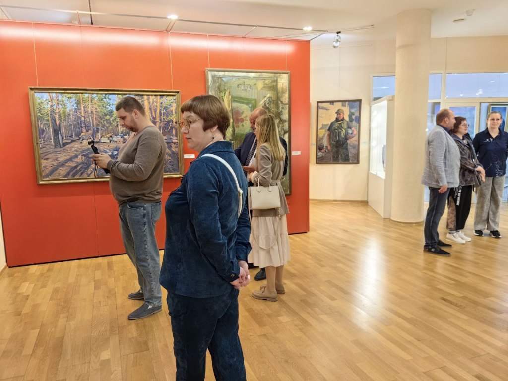 В Ханты-Мансийске впервые выставлены произведения известных российских художников: А. Крюкова, М. Фаюстова и Т. Пономаренко-Левераш. Алексей Крюков и Максим Фаюстов представляют Московский Союз художников, Татьяна Пономаренко-Левераш – член Союз художников России, член Международной ассоциации изобразительных искусств АИАП ЮНЕСКО, сопредседатель Донецкого регионального отделения Общероссийского общественного движения «Культурный Фронт России», руководитель творческого объединения «Летописец Донбасса». Слова приветствия Татьяны Витальевны открыли выставку. Художник эмоционально рассказала историю противостояния народа Донбасса, которая и нашла отражение в работах художников – глубоком эмоциональном свидетельстве трагедии и мужества.