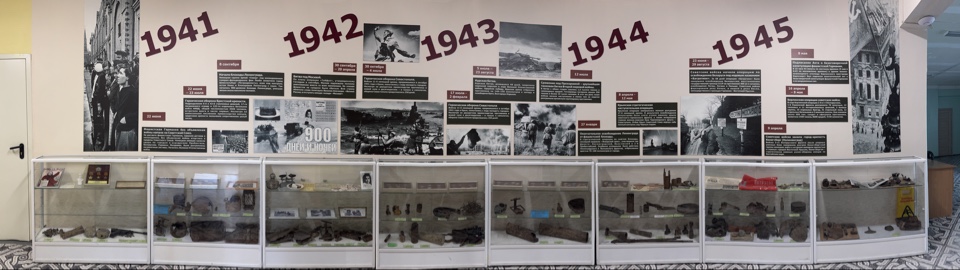 Представлена фотоархивом, документами, стендами с информацией о ветеранах и событиях ВОВ, личными вещами участников Великой Отечественной войны (офицерский планшет, солдатская каска и др.), привезенными поисковым отрядом «Югорская звезда».