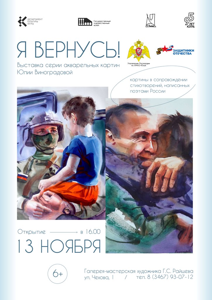 13 ноября в 16:00 в Галерее-мастерской художника Г.С. Райшева начинает работу выставка акварельных картин «Я вернусь!». Это не просто экспозиция, а глубокое погружение в мир чувств, где акварельные полотна Юлии Виноградовой будут дополнены проникновенными стихотворениями и текстами песен.