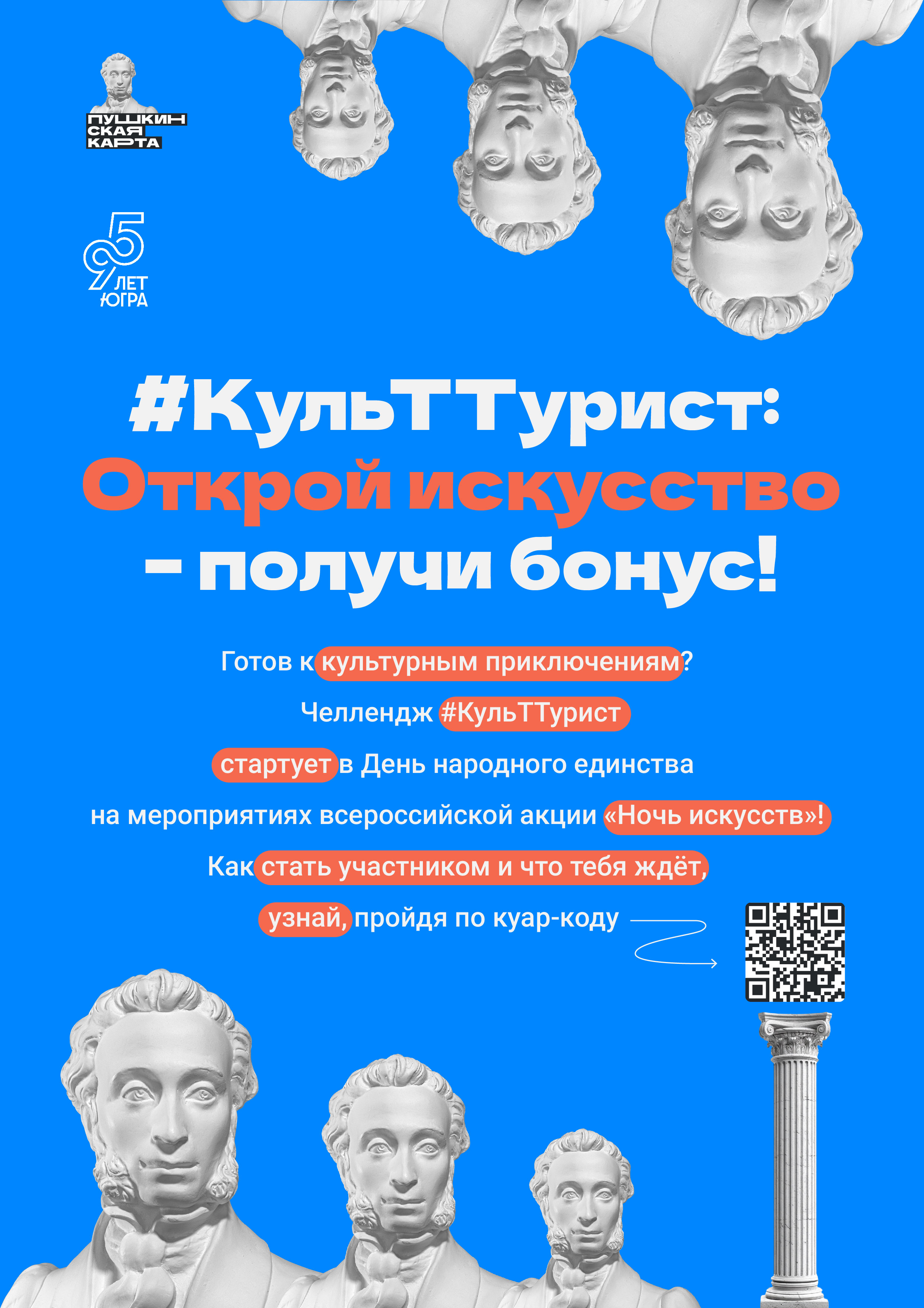 Готов к культурным приключениям? Челлендж #КультТурист для обладателей Пушкинской карты стартует в День народного единства на мероприятиях всероссийской акции «Ночь искусств»!