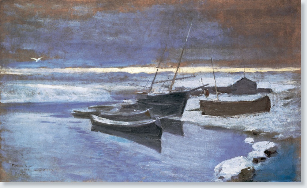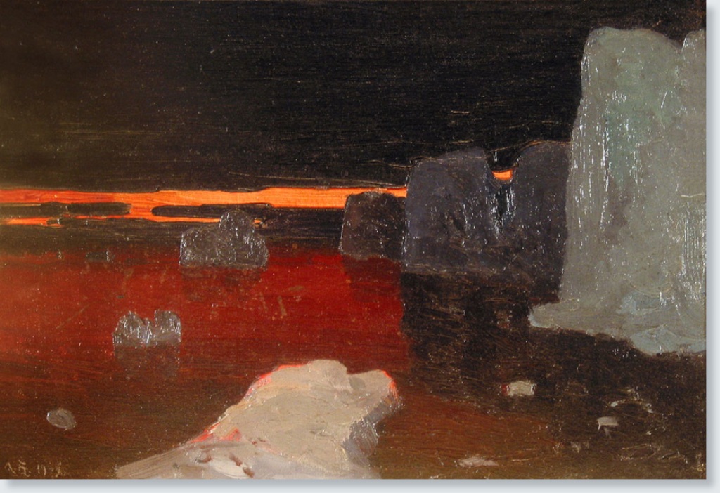 Небольшой по формату «Полярный пейзаж» (1905) Александра Борисова производит сильное впечатление своим драматичным мрачноватым колоритом. Борисов широко известен своими произведениями, посвященными Крайнему Северу, и сам организовал ряд экспедиций с научными и художественно-этнографическими целями (1894, 1896, 1898, 1899, 1901, 1906). «Полярный пейзаж» привезен художником с Новой Земли.