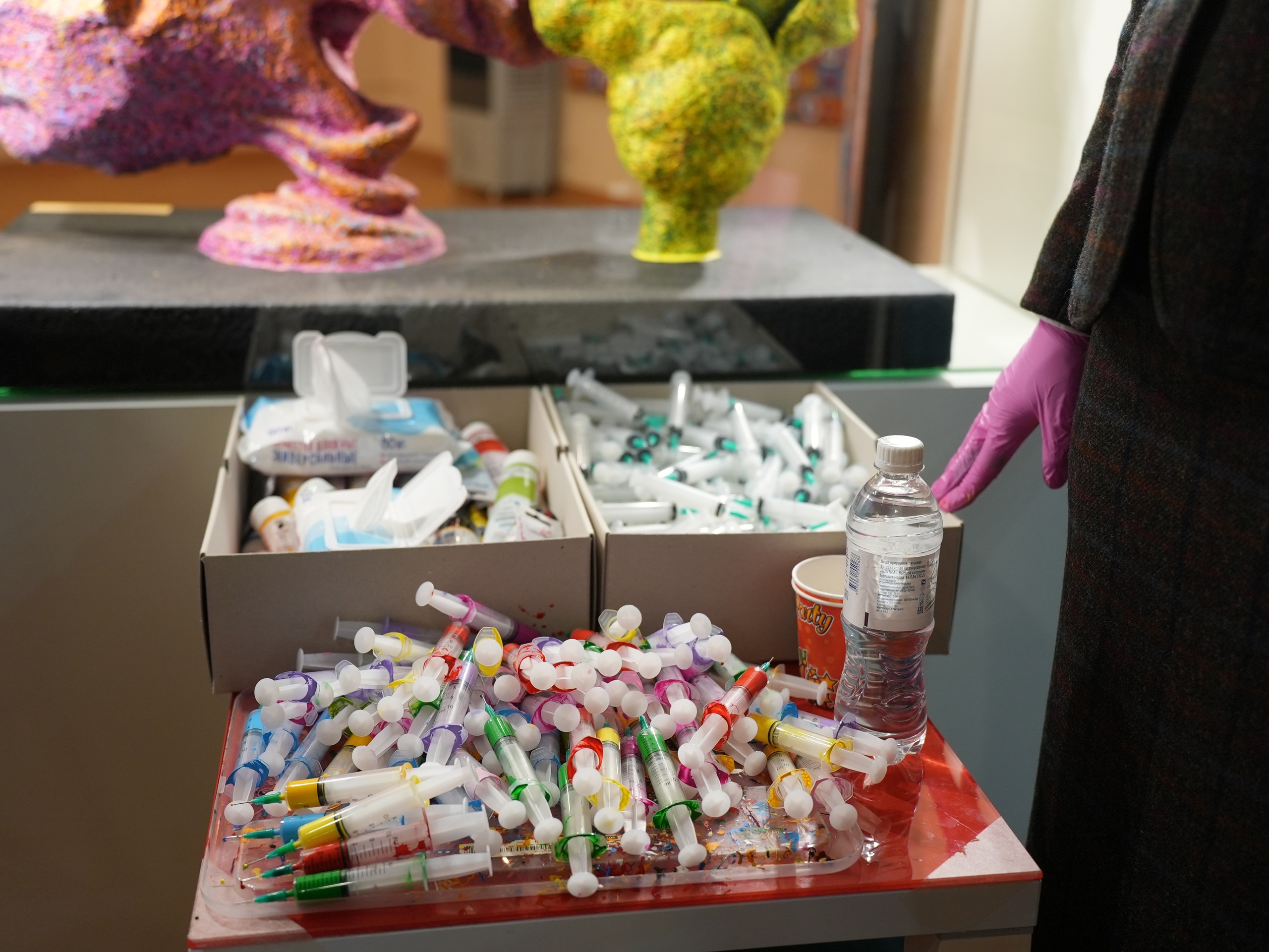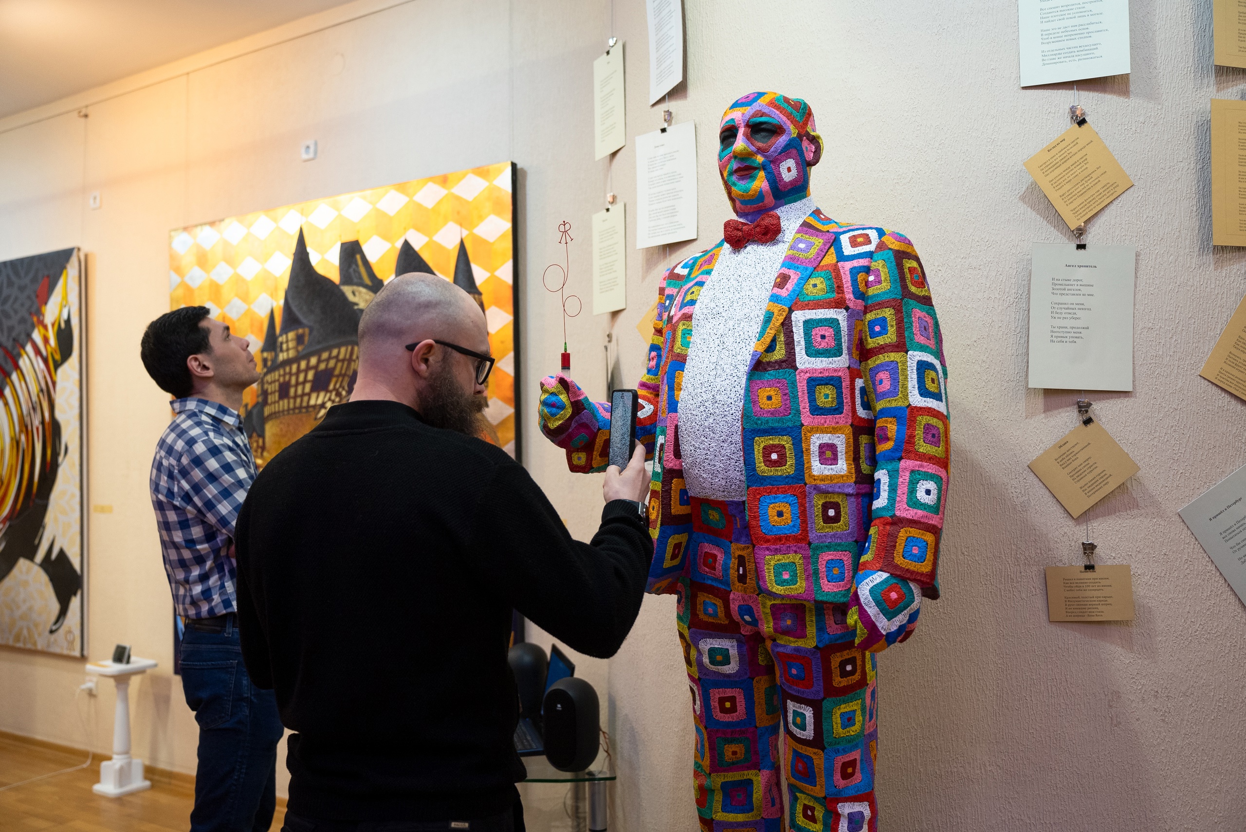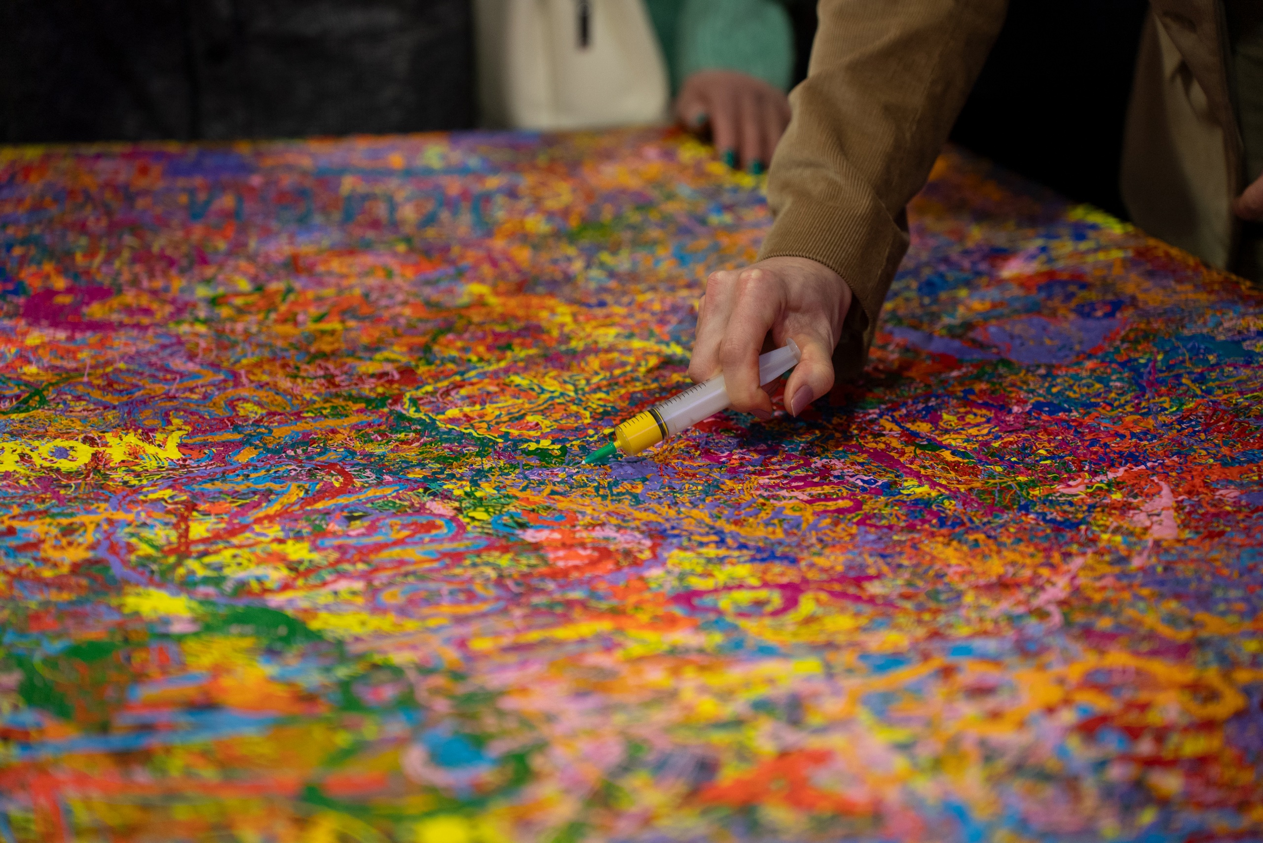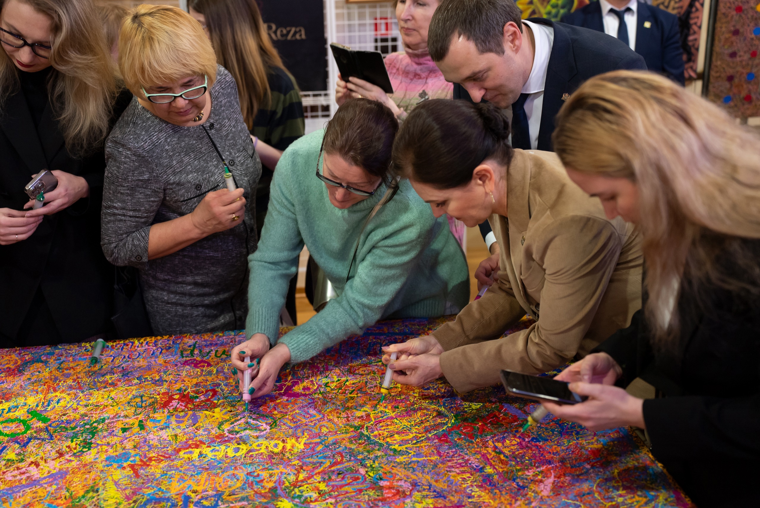 В день открытия югорчане и гости региона смогли почувствовать себя филумистами. Художник провел интерактив с посетителями, где каждый смог проникнуться тонкостями этого вида искусства и попробовать нанести шприцем на полотно свою художественную инсталляцию. Живописцы-любители оставили свой след в творчестве автора в виде слов «любовь», «мир», «добро», «жить», и, конечно, «Югра».