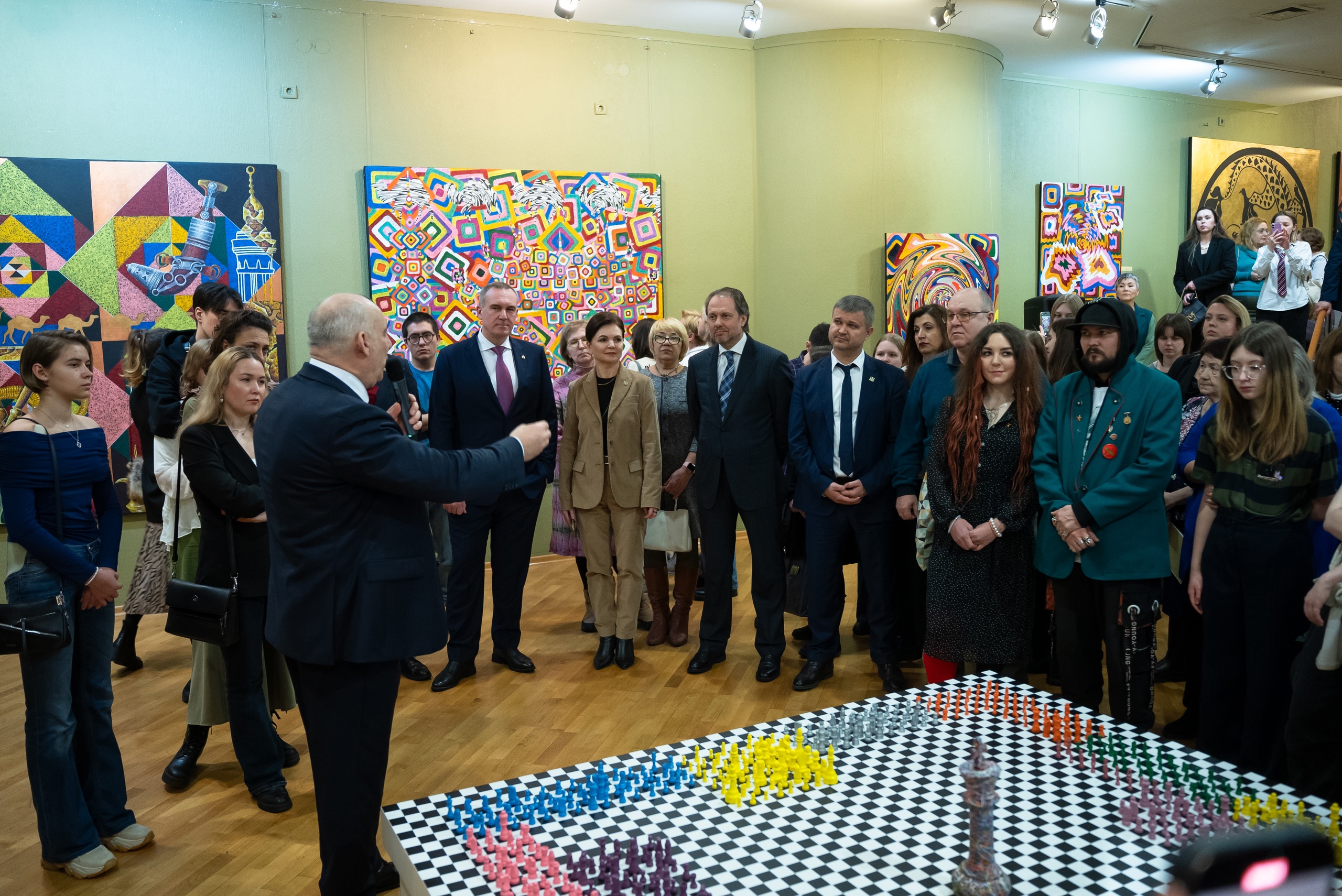 На открытии новой выставки гостей приветствовал глава региона Руслан Кухарук: «Сегодня мы вспоминаем и говорим слова благодарности тем людям, которые создавали этот музей. Он архитектурно прекрасен и располагается в центральной части нашего города, но самое главное - это то наследие, которое бережно хранят сотрудники, работающие в музее сейчас. И не просто хранят, а показывают все то, что было создано великими людьми в мировой художественной культуре. Приятно, что музей постоянно развивается, он отвечает на запрос текущего времени. Мы видим и экспозиции, которые опережают время. Я встречался в музее с теми, кто является двигателем креативных индустрий и создает интересный, уникальный творческий продукт, который, являясь настоящим искусством, влияет и на развитие экономики региона и страны. Нам повезло, что в соседнем с нами регионе есть художник – родоначальник нового направления. То, что мы видим, то, что нас окружает сейчас в залах музея, конечно, очень уникальные и завораживающие произведения. Образы в инсталляциях связывают прошлое, настоящее и будущее. С этой выставки начинается 15 сезон музея, и именно эта выставка продолжает нашу программу, которую мы запустили совестно с Ямало-Ненецким автономным округом и Тюменской областью в рамках культурного обмена. Я всех поздравляю с началом нового сезона».