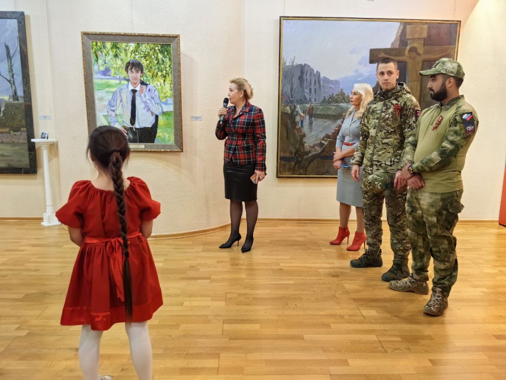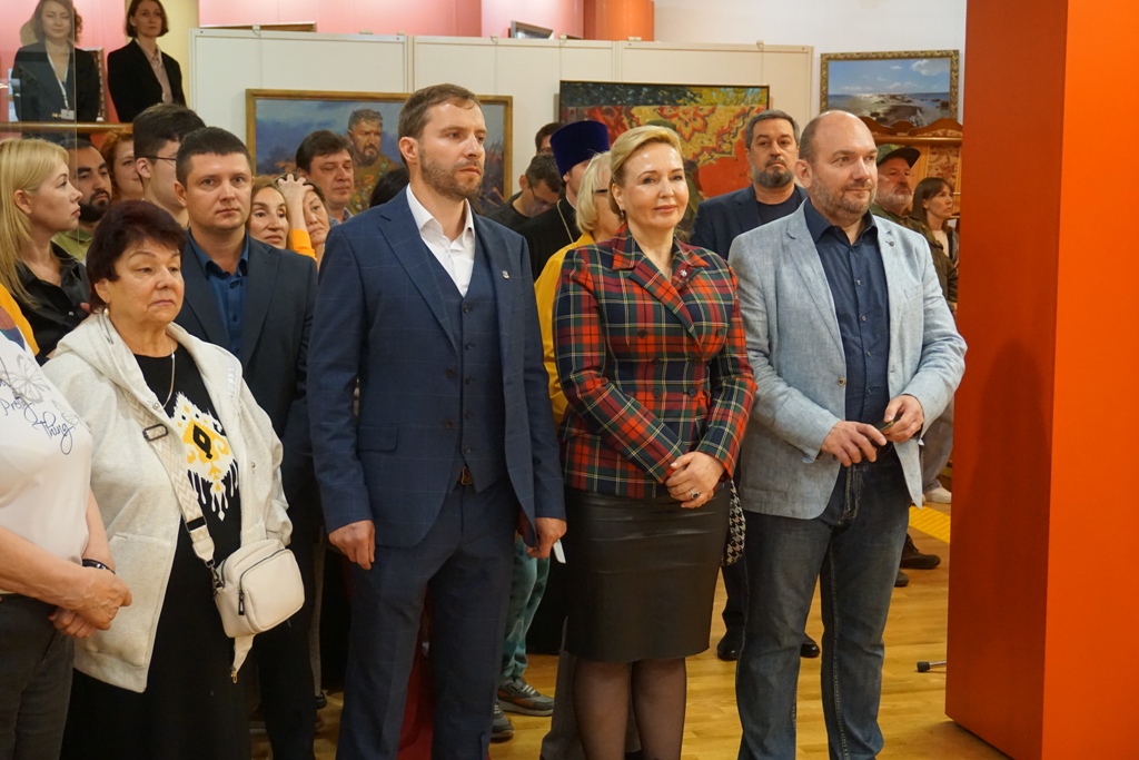 В Ханты-Мансийске впервые выставлены произведения известных российских художников: А. Крюкова, М. Фаюстова и Т. Пономаренко-Левераш. Алексей Крюков и Максим Фаюстов представляют Московский Союз художников, Татьяна Пономаренко-Левераш – член Союз художников России, член Международной ассоциации изобразительных искусств АИАП ЮНЕСКО, сопредседатель Донецкого регионального отделения Общероссийского общественного движения «Культурный Фронт России», руководитель творческого объединения «Летописец Донбасса». Слова приветствия Татьяны Витальевны открыли выставку. Художник эмоционально рассказала историю противостояния народа Донбасса, которая и нашла отражение в работах художников – глубоком эмоциональном свидетельстве трагедии и мужества.